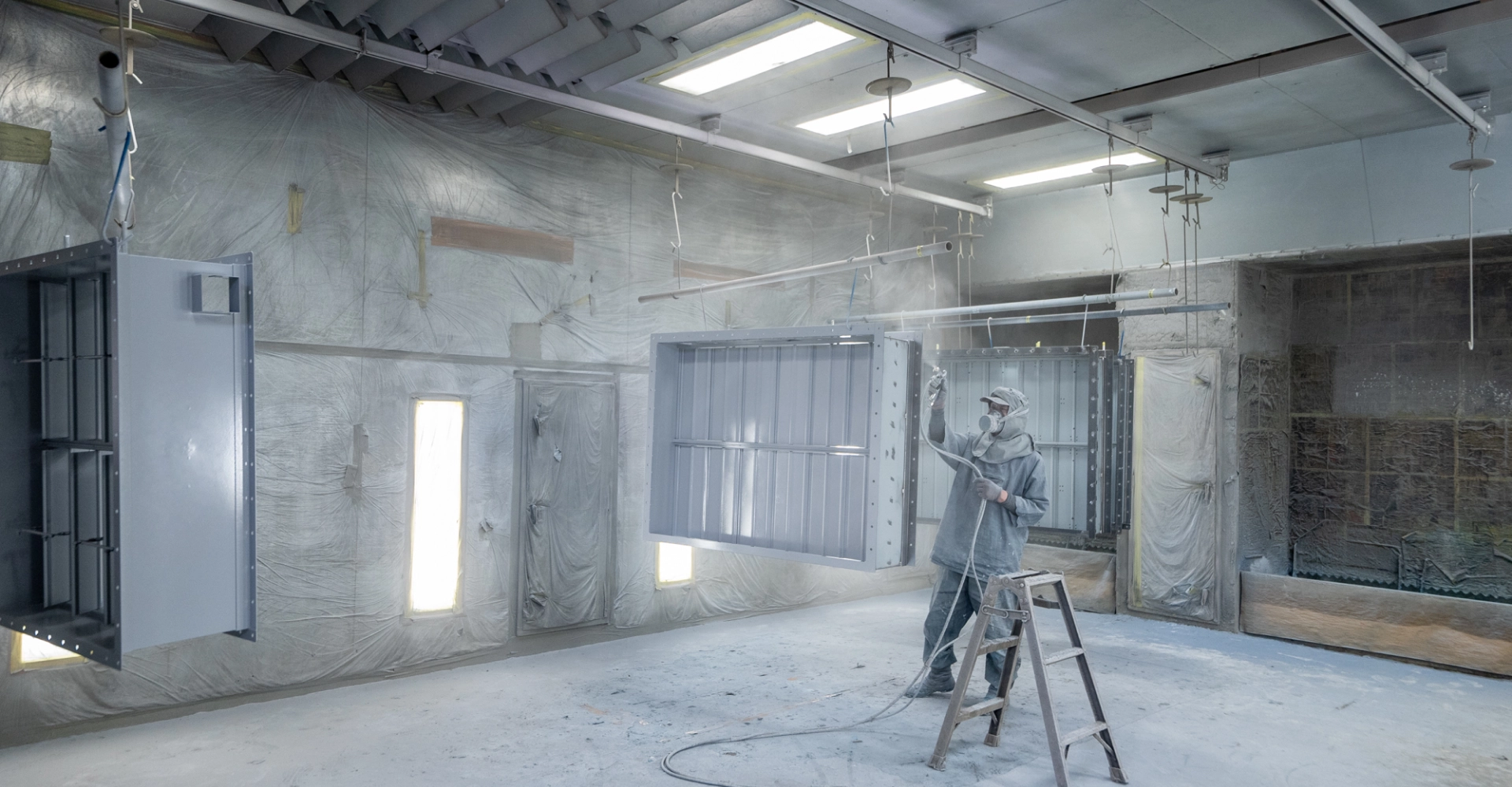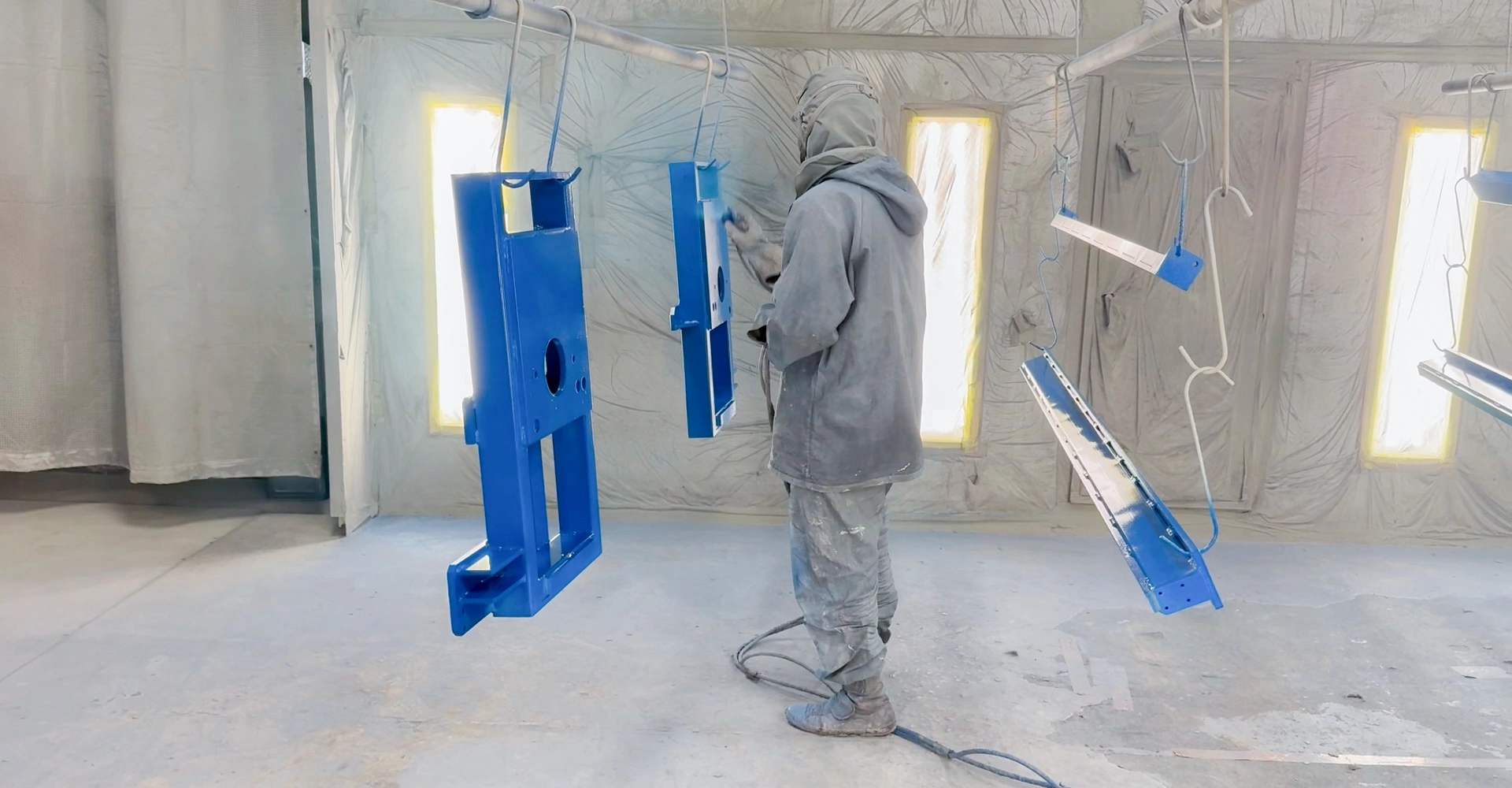焼付塗装や常乾塗装などの溶剤塗装や、粉体塗装を中心に、鉄・ステンレス・アルミ・鋳物製品の塗装に対応しています。最大7mの長尺・大型構造物にも対応可能な塗装設備を備え、パテ処理やマスキングを含む美観仕上げまで一貫対応いたします。