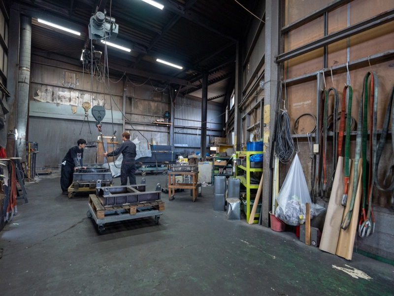 焼付塗装や常乾塗装などの溶剤塗装や、粉体塗装を中心に、鉄・ステンレス・アルミ・鋳物製品の塗装に対応しています。最大7mの長尺・大型構造物にも対応可能な塗装設備を備え、パテ処理やマスキングを含む美観仕上げまで一貫対応いたします。