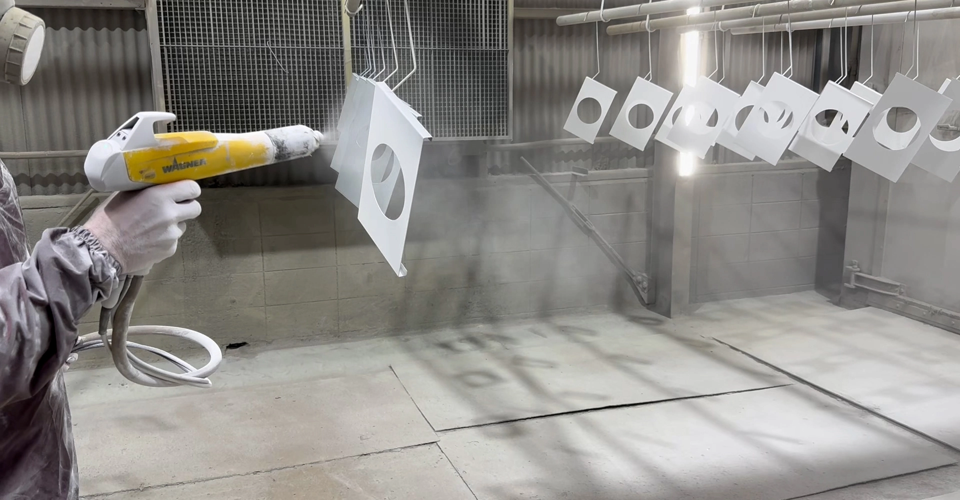 粉体塗装は、静電気を利用して粉状の塗料を製品に付着させ、熱で溶融・硬化させる環境対応型の塗装方法です。溶剤を使用しないため有害物質の排出が少なく、作業環境にも優しいのが特徴です。